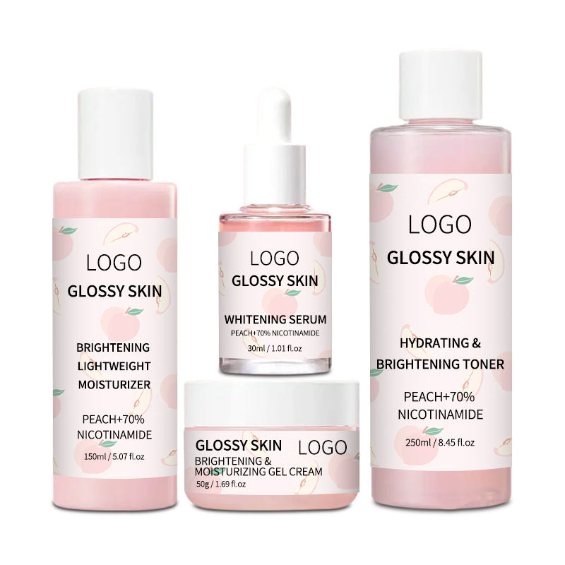 Private Label Vegan Cruelty Free Hydrating Peach Brightening Glass Skin Care Set with AHA & Vitamin C