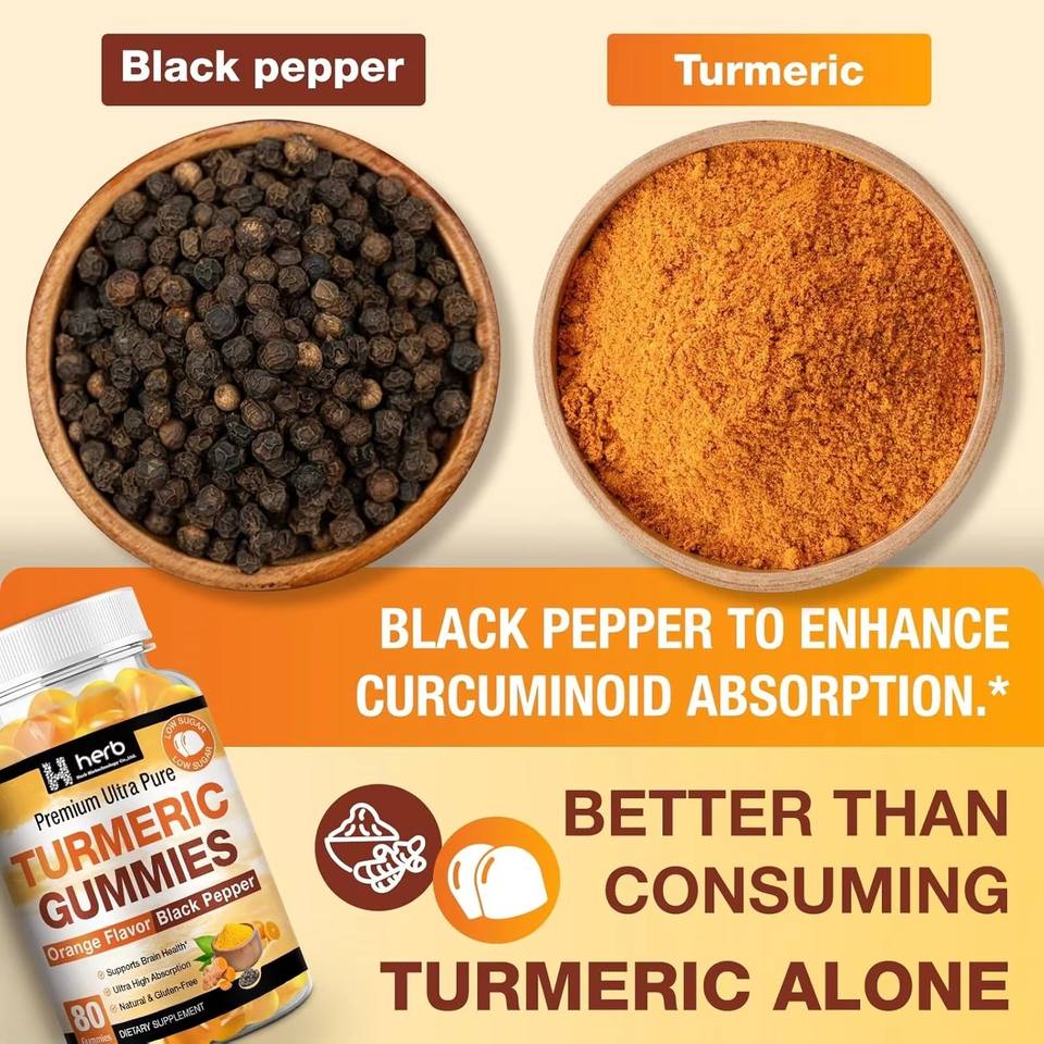 Gummies véganes de curcuma et gingembre à marque privée, suppléments énergétiques et de santé pour adultes, au poivre noir
