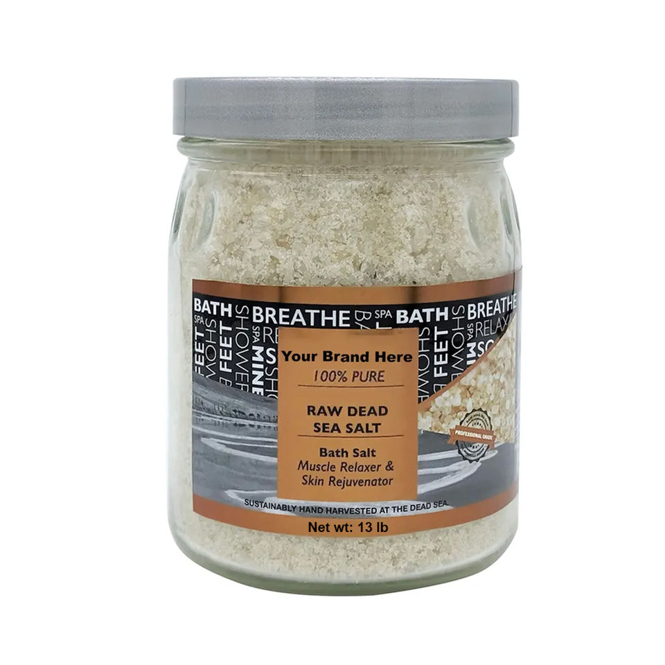Sel de bain de la mer Morte brut de 13lb, étiquette privée blanche avec tous les minéraux comprend de la boue de la mer Morte fine non nettoyée