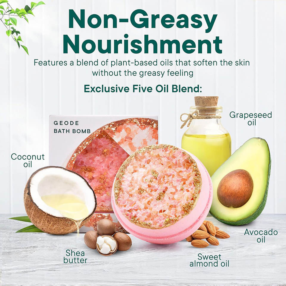 Organique, Ingrédients naturels 100%, Bombes de bain en forme de géode, Rose