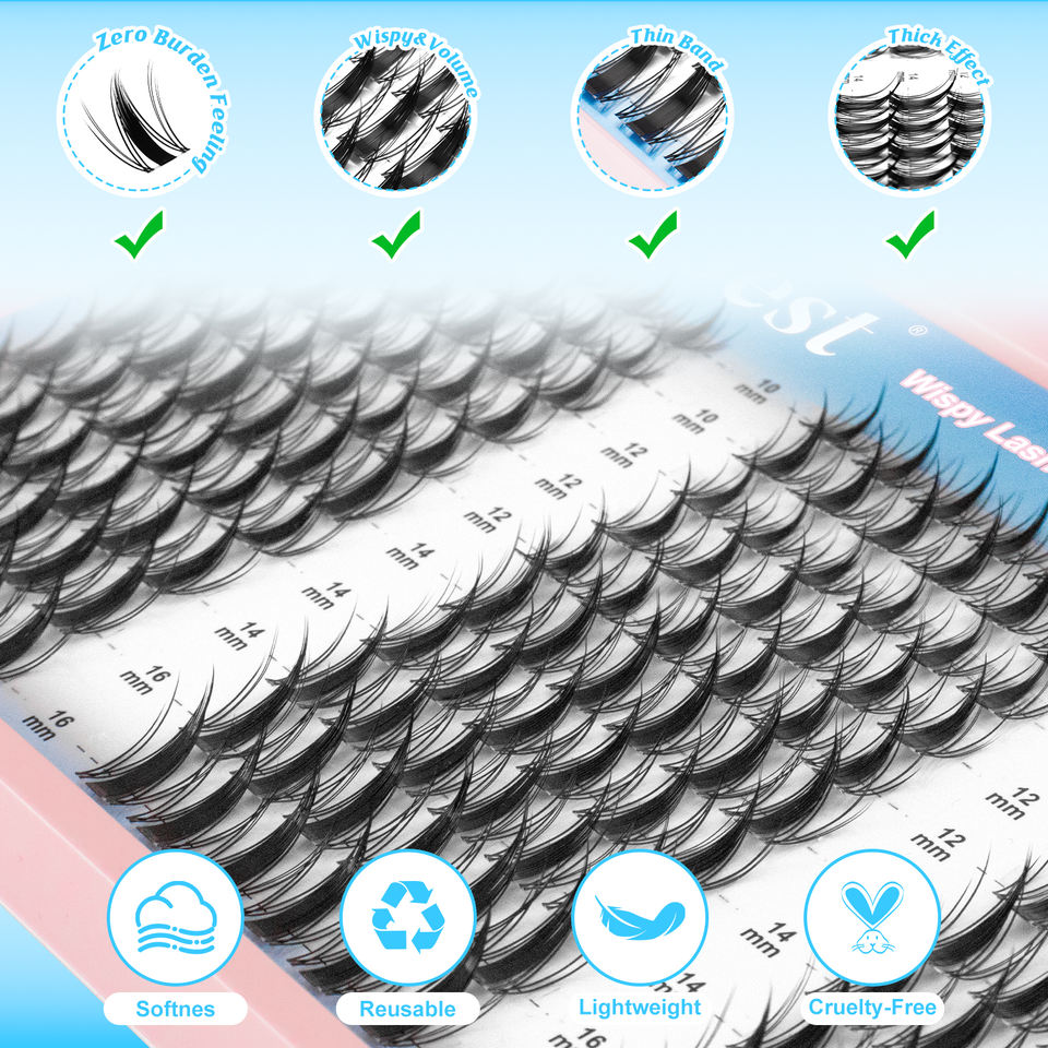 Private Label Wispy Lash Cluster Soft Natural Thin Band Volume 180PCS Large Capacity Lash Cluster Kit