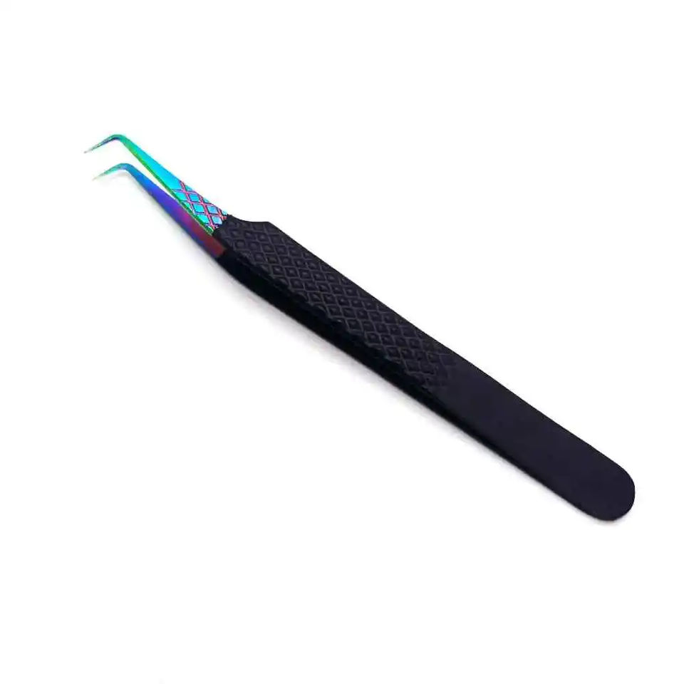 Pince à épiler d'extension de cils à pointe de fibre de logo privé