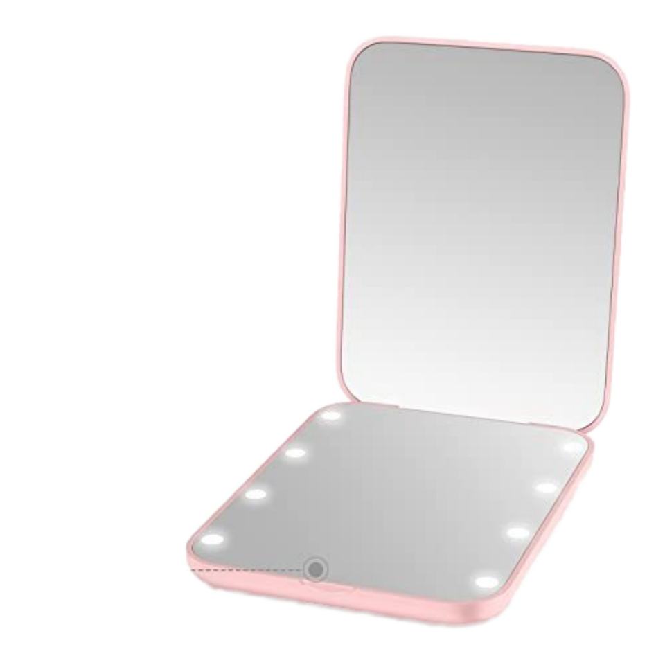 Miroir de poche portable avec logo personnalisé, miroir de maquillage compact pliable de voyage avec lumière LED, grossissement 2X, miroir LED