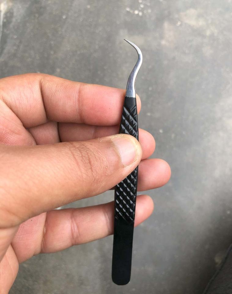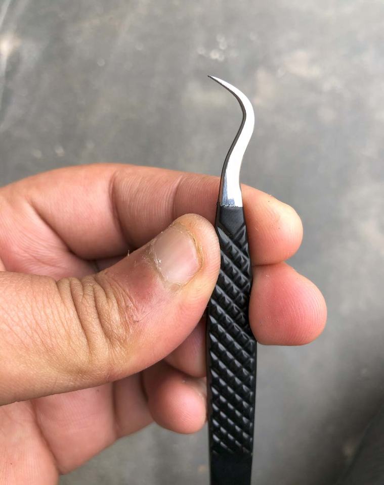 Pince à épiler pour extensions de cils en acier inoxydable noir à pointe nano, logo personnalisé, Mega 45 75 90 degrés