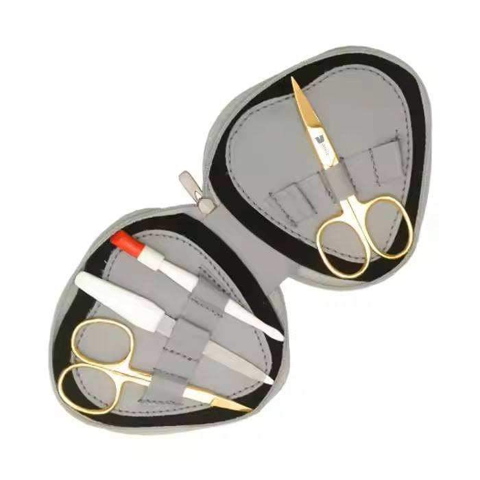 Kit de manucure et pédicure professionnel en acier inoxydable plaqué, avec logo personnalisé, comprenant un repousse-cuticules et un coupe-ongles durables