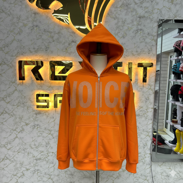 Sweat à capuche orange à fermeture éclair avec logo personnalisé de marque privée imprimé fabriqué en usine sweats à capuche à bas prix pour hommes sweats à capuche pour hommes