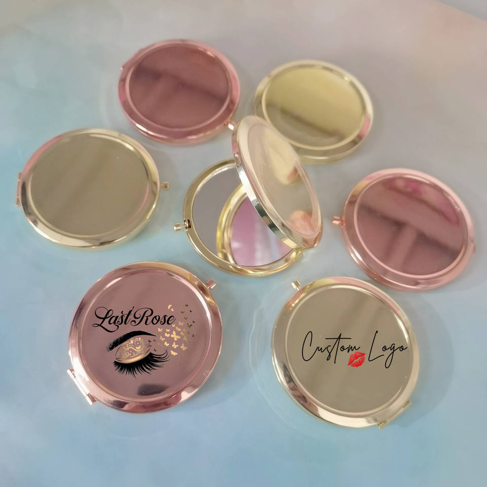 Logo privé double face miroir de maquillage plié en gros Mini miroir cosmétique rond miroir de poche de maquillage