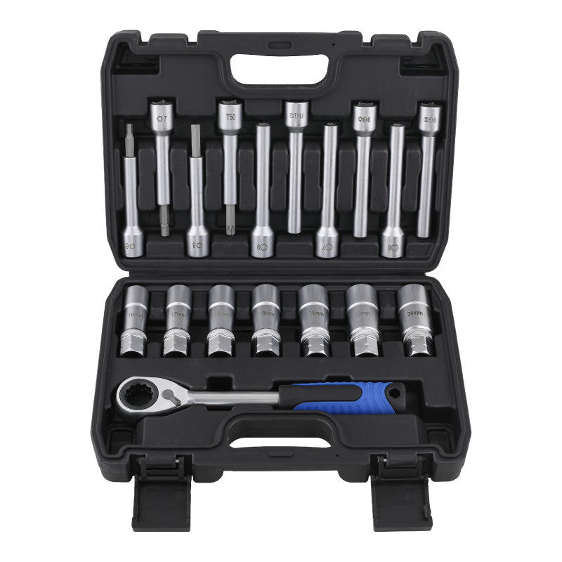 Jeu de clés à douilles professionnel 18 pièces 1/2 po en acier Cr-V, étui inclus pour réparation automobile