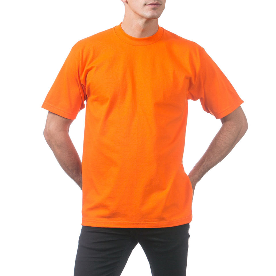 Pro Club T-shirt à col rond à manches courtes en coton épais pour hommes T-shirts de couleur unie classique doux