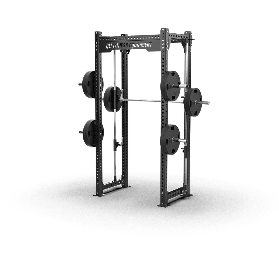 Rack de Squat Professionnel Commercial QLI QPSR02 en Acier Robuste Réglable Demi-Cage pour Entraînement de Force et Musculation avec Poids Libres