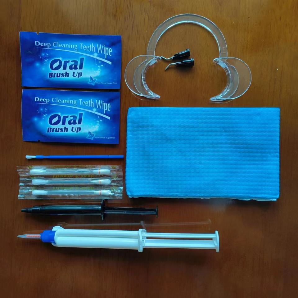 Gel blanchissant, barrière gingivale, ouvre-bouche, bavoir, lingette dentaire, stick VE