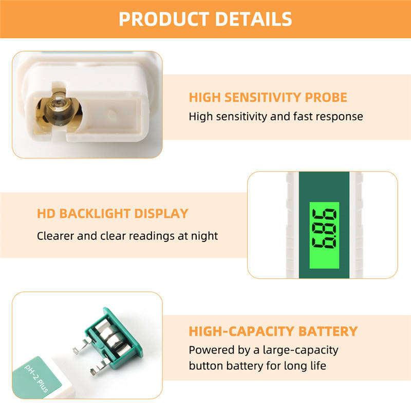 Pro Digital PH Meter Testeur de température Décoloration Rétro-éclairage pour la piscine hydroponique d'eau potable sans ATC