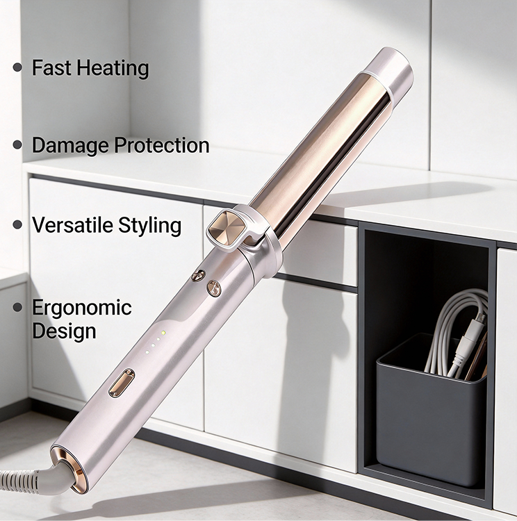 Pro Max Beauty - Fer à friser professionnel en céramique - Affichage de la température LCD - Rotation automatique - Chauffage rapide en 45 secondes - Arrêt automatique - 32 mm