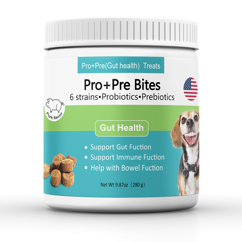 Pro + Pre Bites Probiotic & Prebiotic Soft Chews - 6 souches pour la santé intestinale, le soutien immunitaire et intestinal-270g (90 mâches)