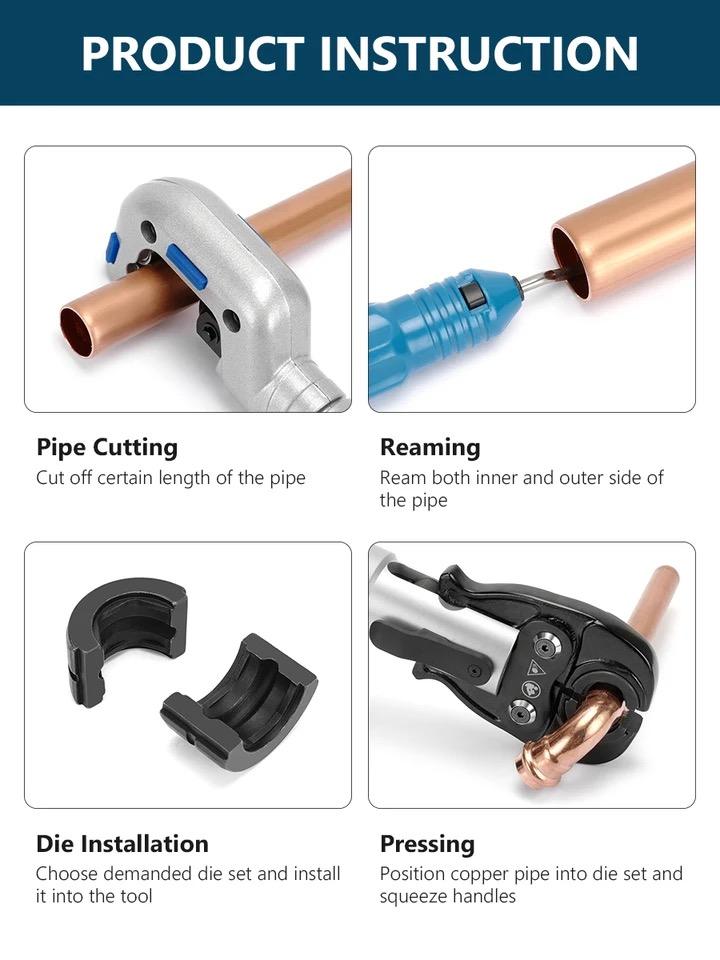 Outils hydrauliques de sertissage de tuyaux en acier inoxydable Pro Press, matrices de profil en acier standard VAU pour raccords en cuivre et en laiton de 15 mm, 20 mm, 25 mm