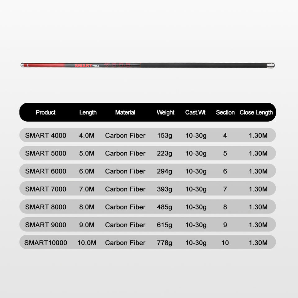 Canne à pêche télescopique Pro Series 6m 7m 8m en fibre de carbone haute stabilité pour la pêche en tournoi en rivière