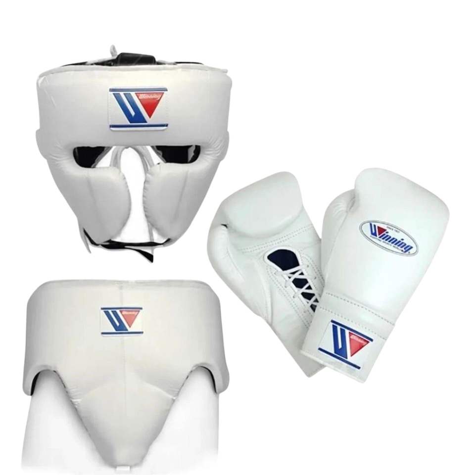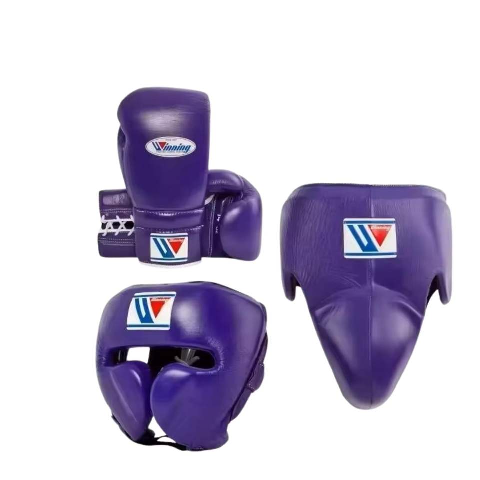 Ensemble de gants de boxe Pro Red Winning BOXING, personnalisables, à lacets et fermeture auto-agrippante, en cuir véritable, pour entraînement de kick-boxing.