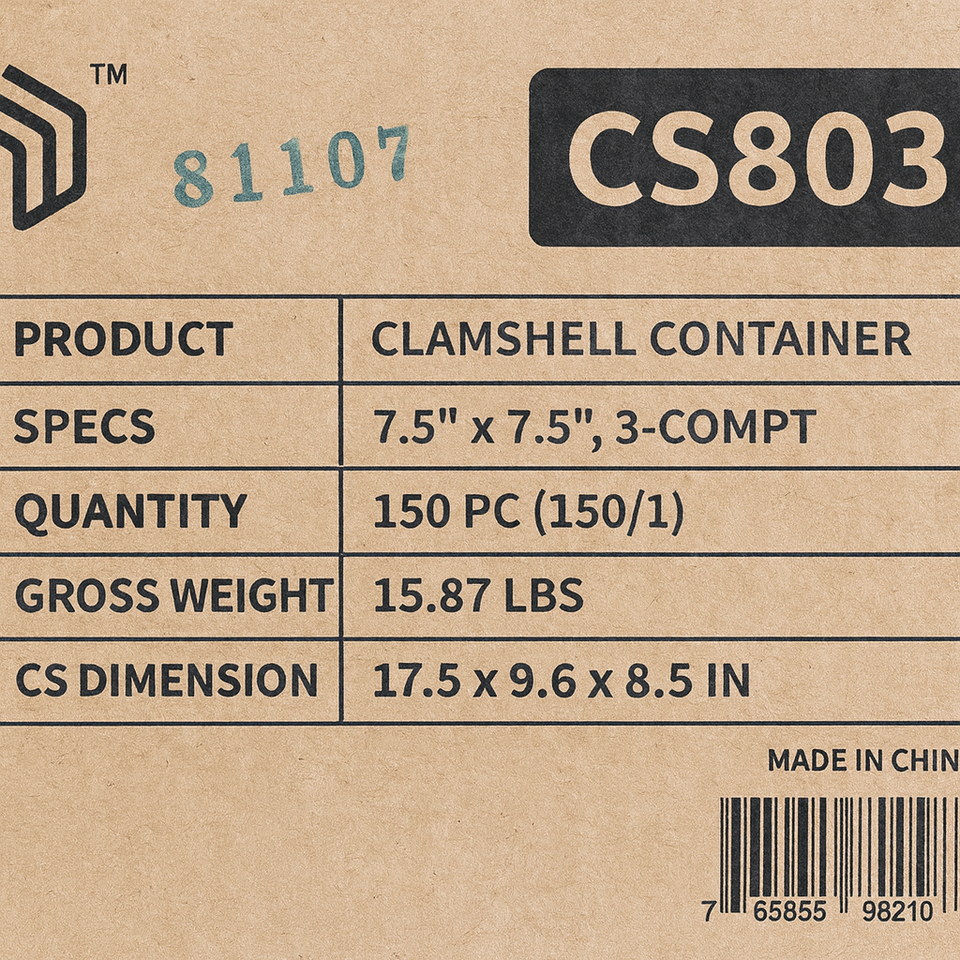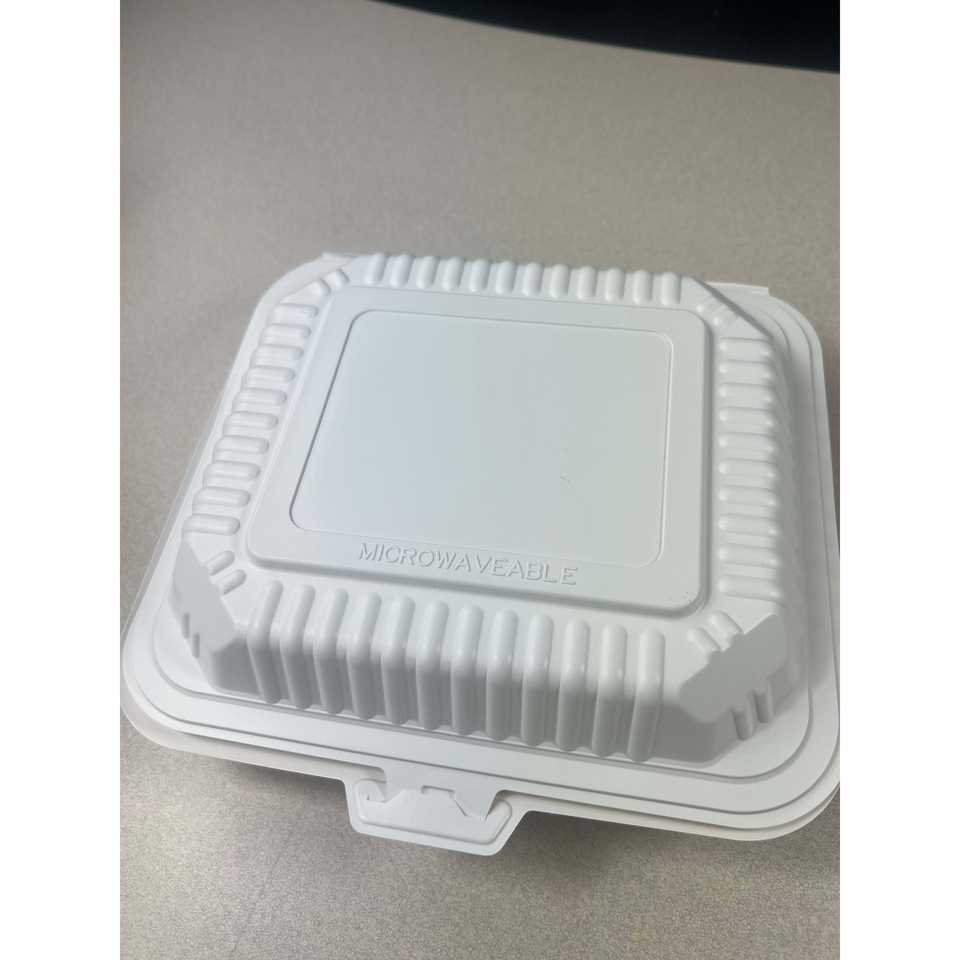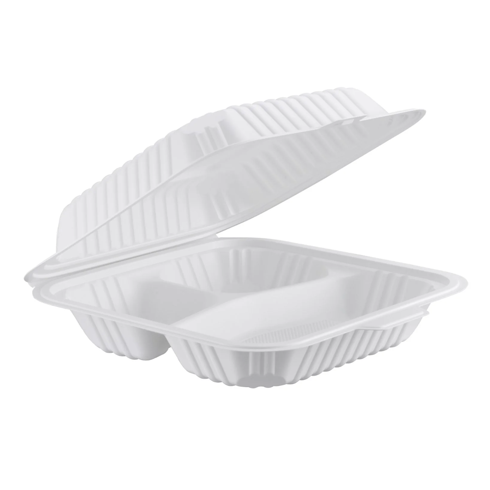 ProTakeOut [7.5 X 7.5 X 2.5 In] Contenants à emporter blancs à 3 compartiments, lot de 150, avec fermeture coulissante centrale, durables, écologiques, en MFPP