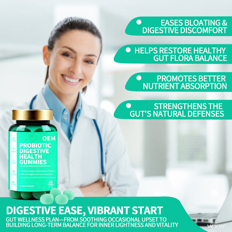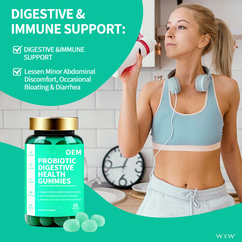Gummies Probiotiques Digestives à l'Inuline en Gros – Formule Personnalisée pour Améliorer l'Activité des Enzymes Digestives