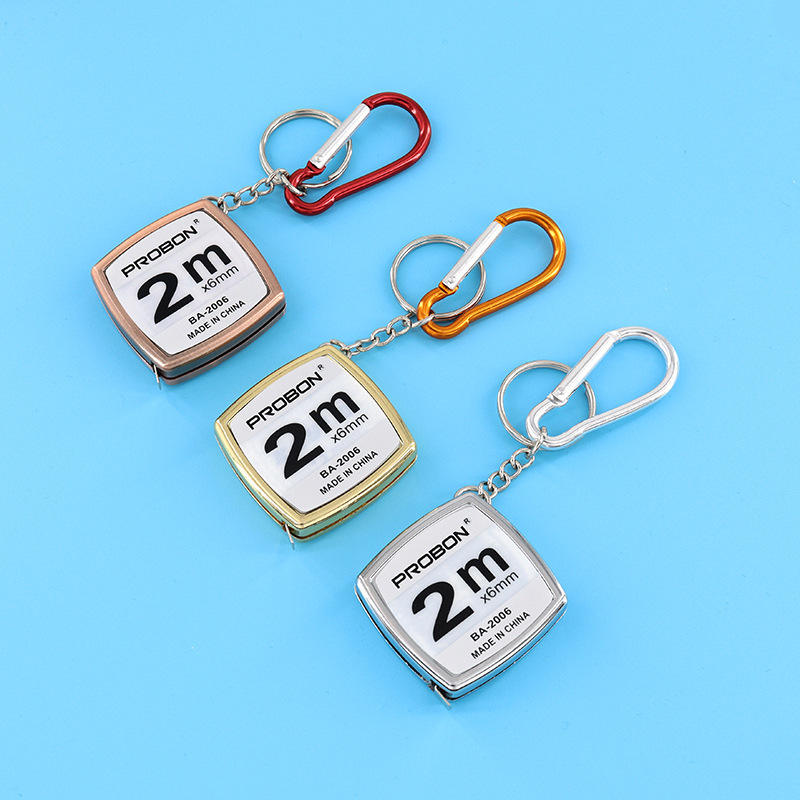 Mètre Ruban Mini Probon 2M x 6mm en Acier Inoxydable, Lame Manuelle, Porte-clés, Fabriqué en Chine BA-2006