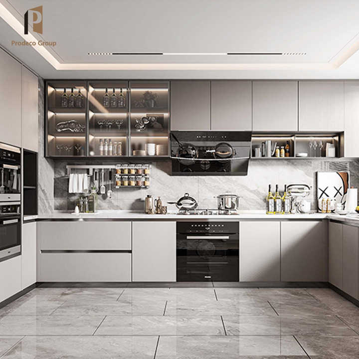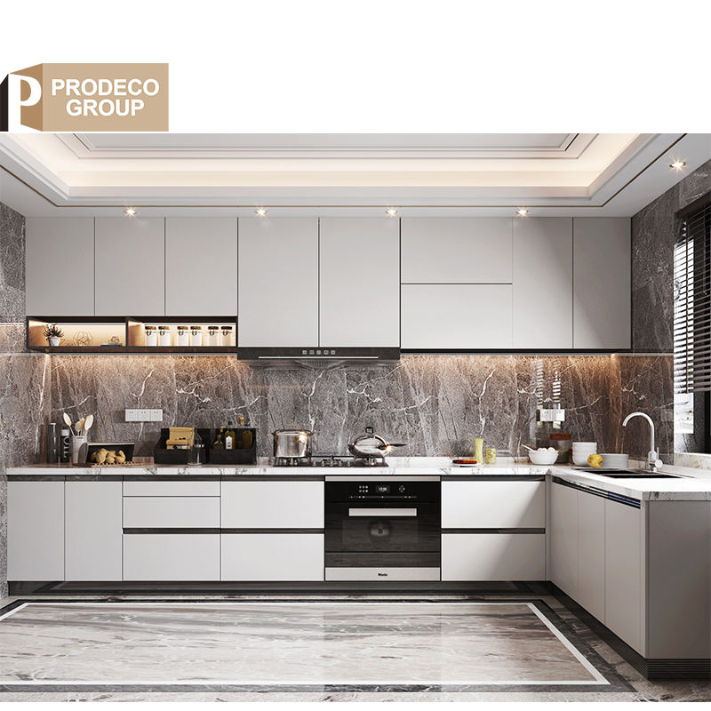 Armoires de cuisine en aluminium Prodeco, placards modernes, lambris laqués modernes, ensembles complets d'armoires de cuisine