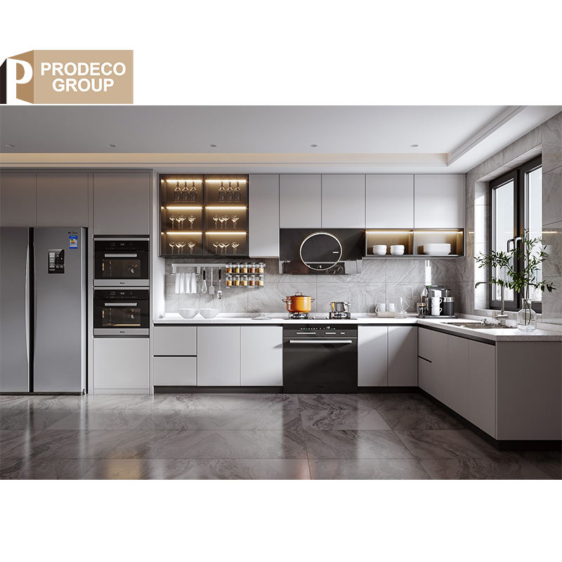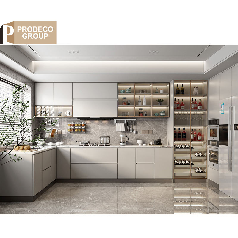 Armoires de Cuisine Haut de Gamme Prodeco Furniture en WPC Italien avec Îlot, Fabriquées en Chine pour Usage Domestique