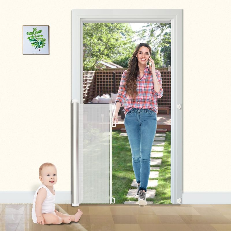 Barrière de sécurité pour bébé en métal rétractable Prodigy SG009 avec design multifonctionnel pour la sécurité à domicile