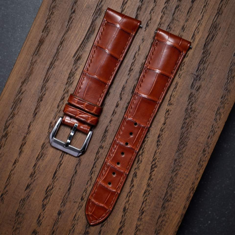 Bracelet de montre en cuir d'alligator de qualité supérieure avec grain naturel authentique pour montres de luxe, exécution de qualité professionnelle