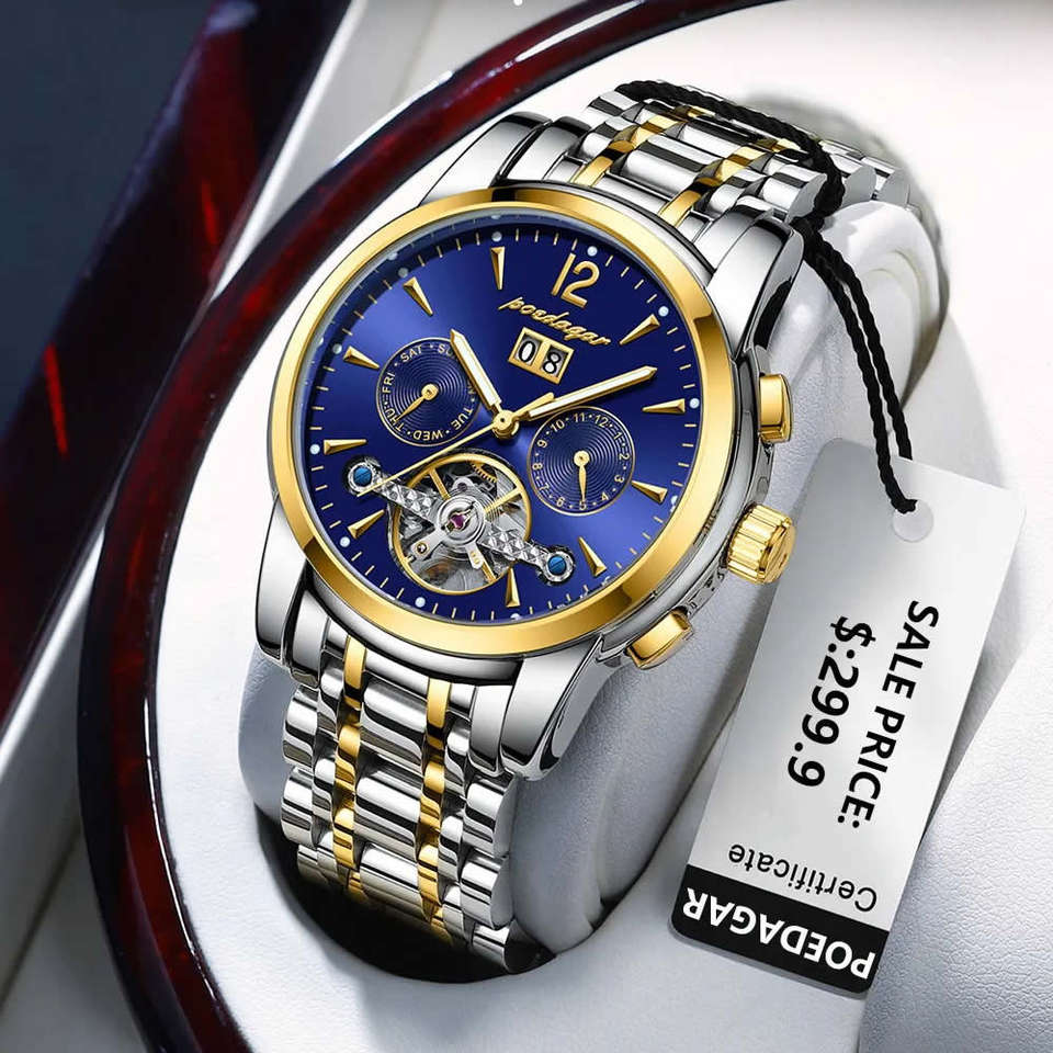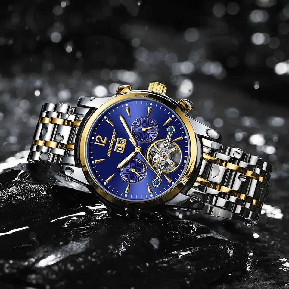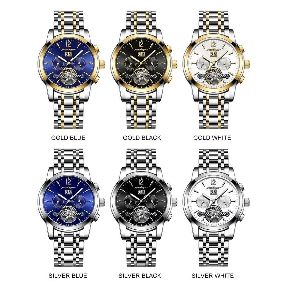 Montre mécanique automatique pour homme Proedagar 1406, boîtier en alliage, cadran en verre, étanche, calendrier, luxe, mode, affaires, lumineuse