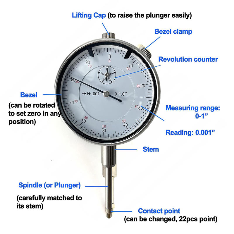 Jeu d'indicateurs à cadran professionnel de 0 à 1.0 pouces avec précision de point de base magnétique pour l'inspection des véhicules-Jauges SEA et METRIC