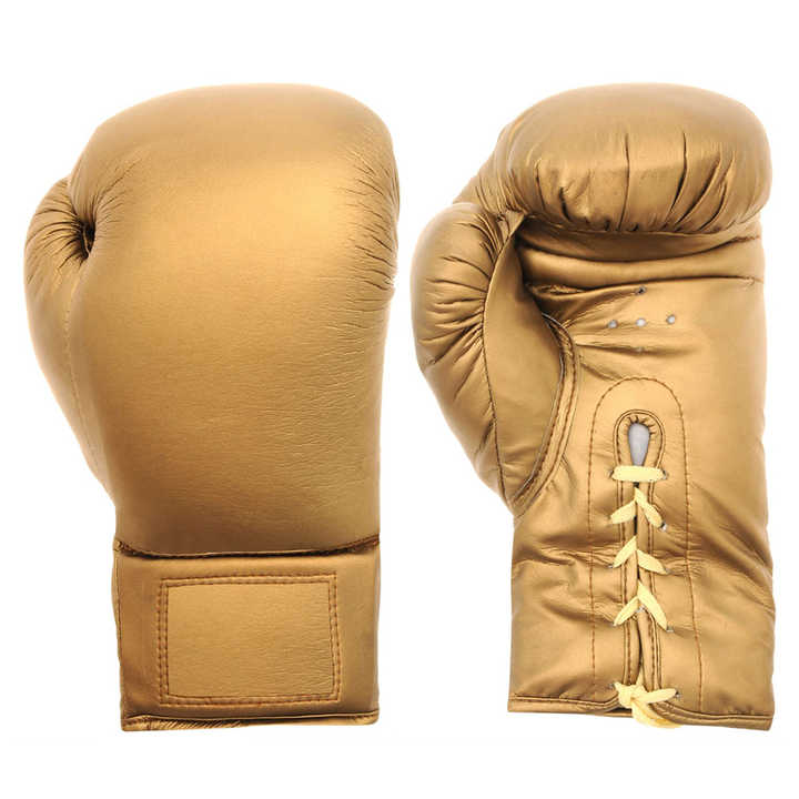 Gants de boxe en cuir dorés métalliques personnalisés | Gants d'entraînement professionnels à lacets en gros | Usine OEM de haute qualité 8oz 10oz