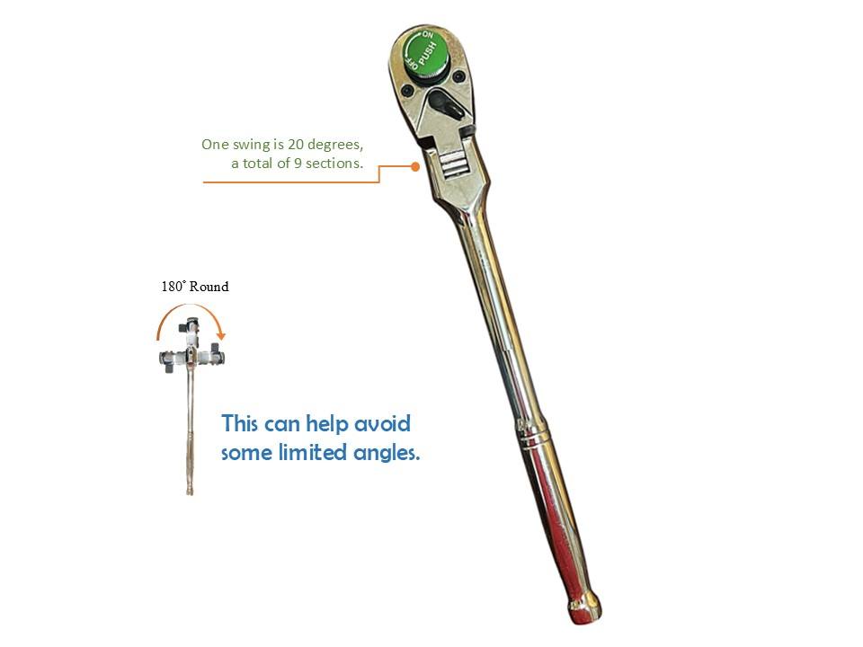 Clé à cliquet professionnelle de 1/2 pouce avec éclairage LED, tête flexible, 72 dents, poignée à dégagement rapide pour réparation dans les espaces sombres
