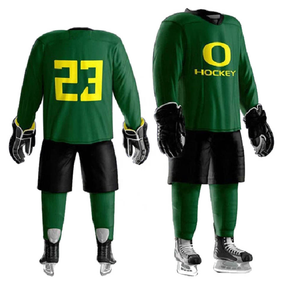 Uniformes de hockey sur glace personnalisés en polyester 100% avec broderie de votre propre logo, design respirant et à séchage rapide