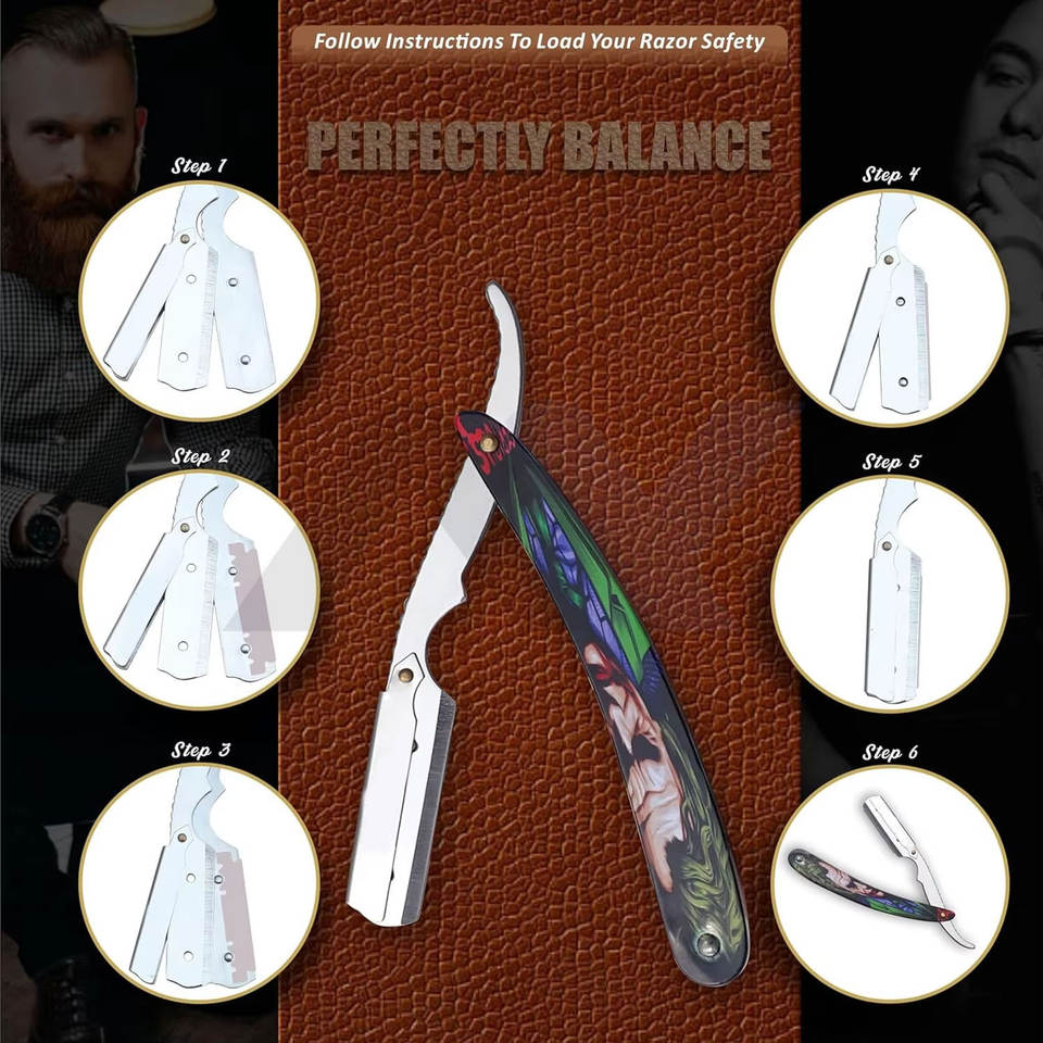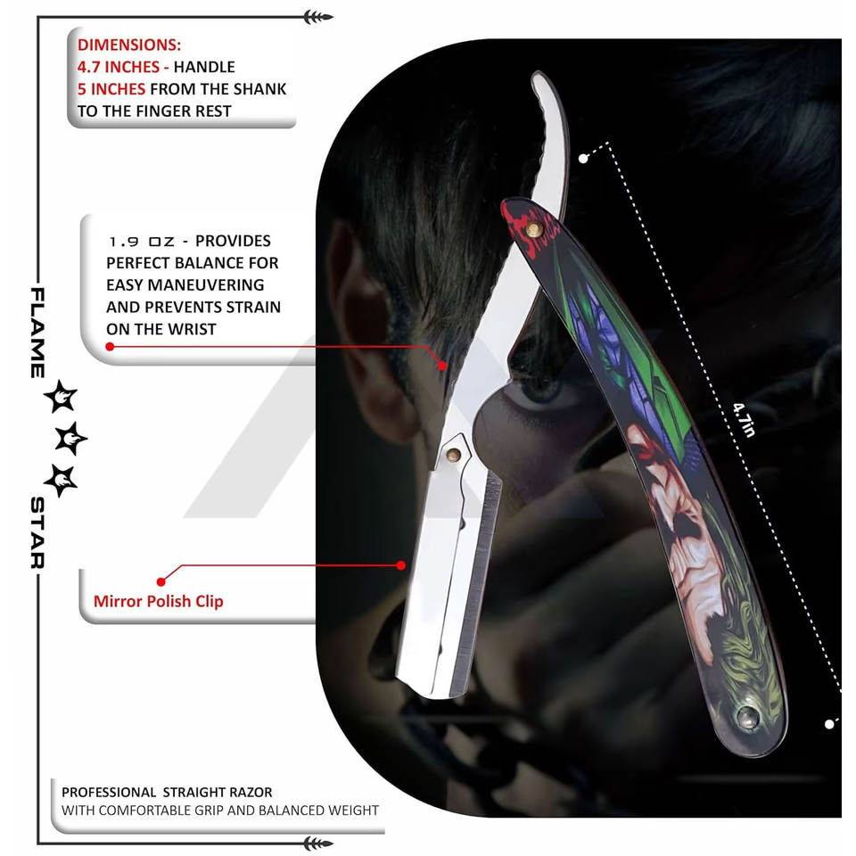 Rasoir de précision professionnel 100% acier inoxydable pour barbier, lame droite, salon de coiffure, outil de rasage Joker