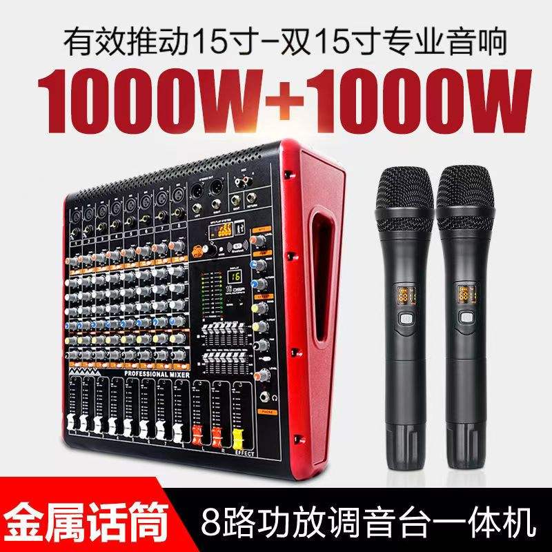 Mixeur Professionnel 1000W 8 Canaux Système Sonore Stéréo Contrôleur DJ Karaoké Alimenté Accessoires Instrument de Musique Audio