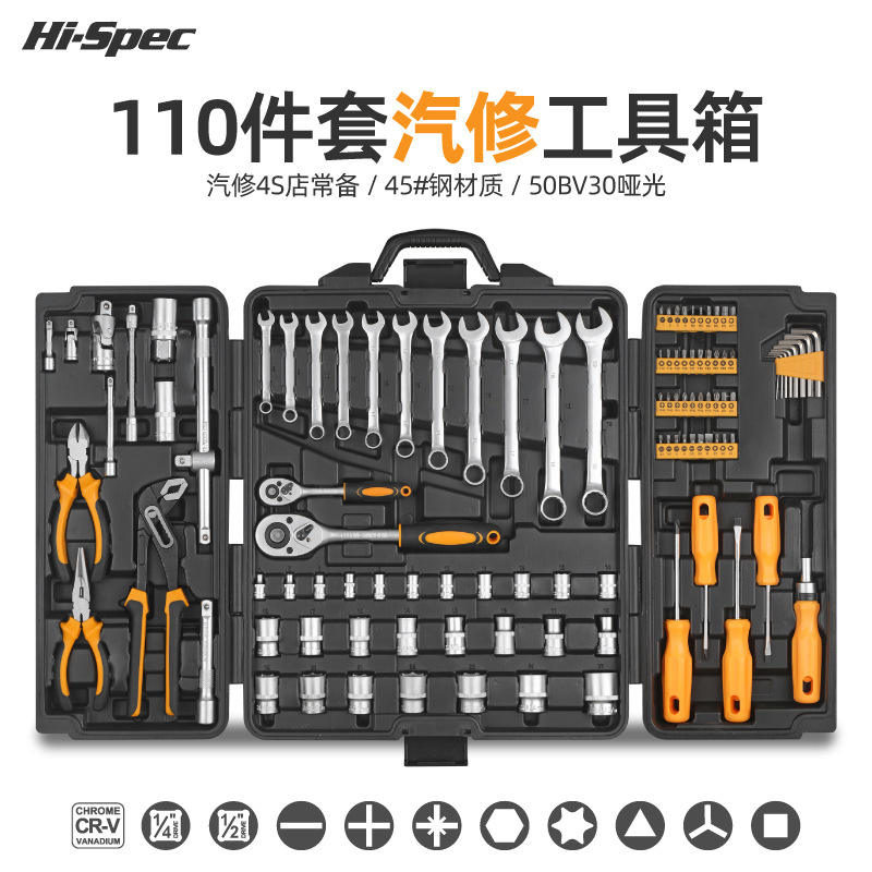 Ensemble d'outils de réparation automobile professionnel de 110 pièces avec clé à douille, cliquet, boîte à outils en acier au carbone pour mécanique et automobile