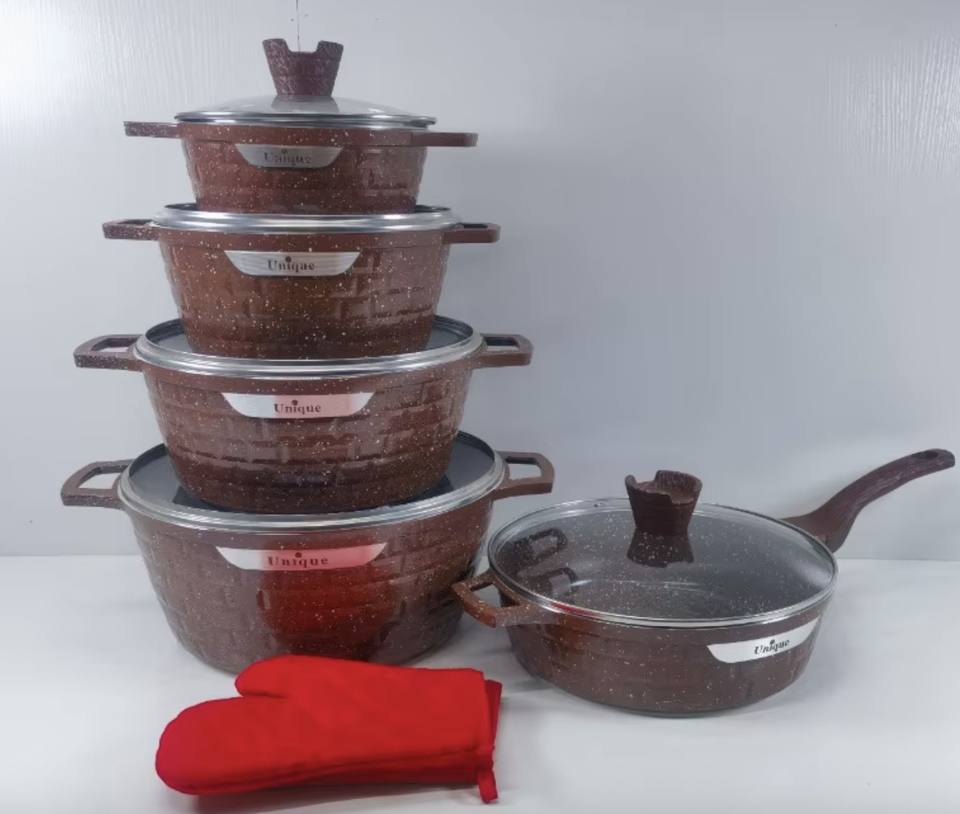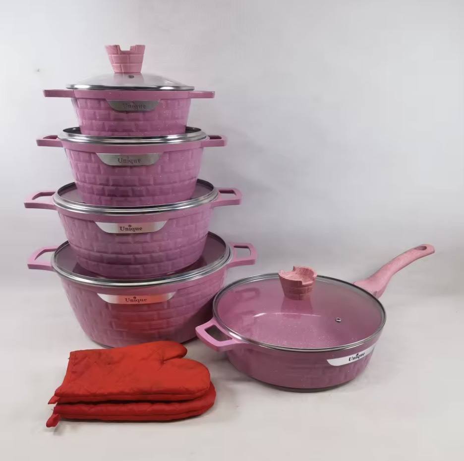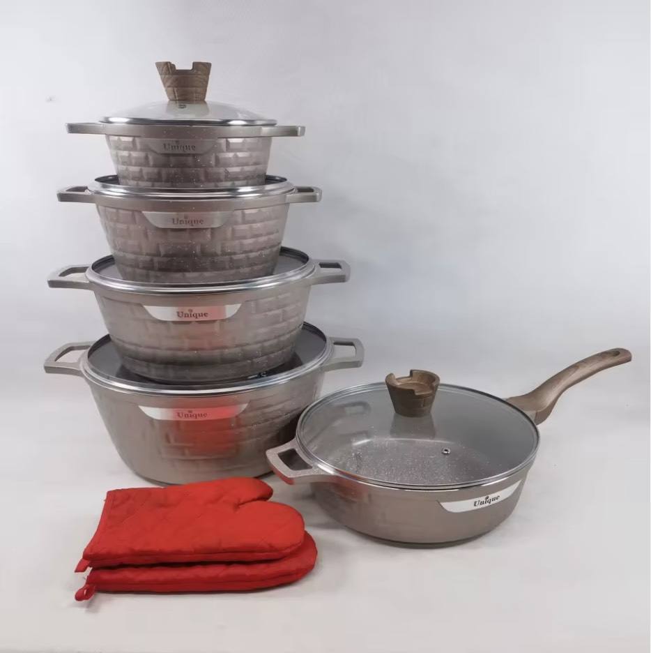 Batterie de cuisine professionnelle 12 pièces en aluminium moulé avec revêtement granit, casseroles 20, 24, 28, 32 cm et poêle à frire 28 cm pour le marché africain