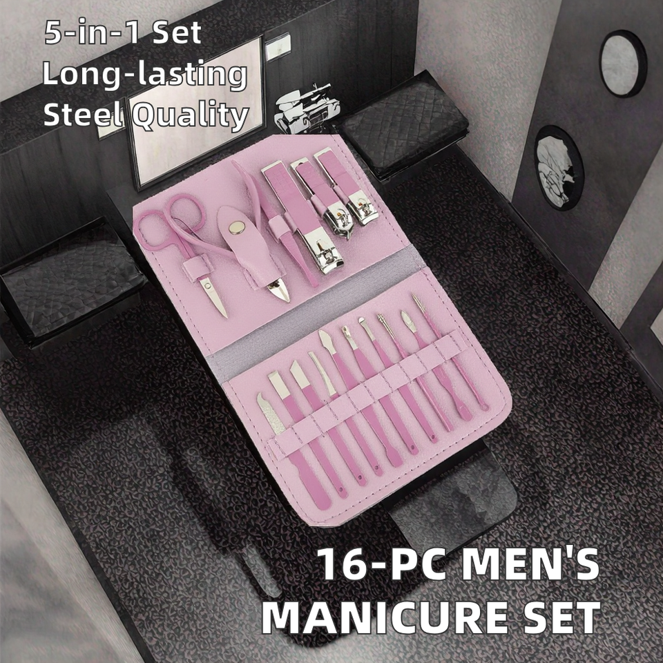 Professional 16-Piece Nail Care Set High Quality Stainless Steel Manicure & Pedicure Beauty Case Included for Men