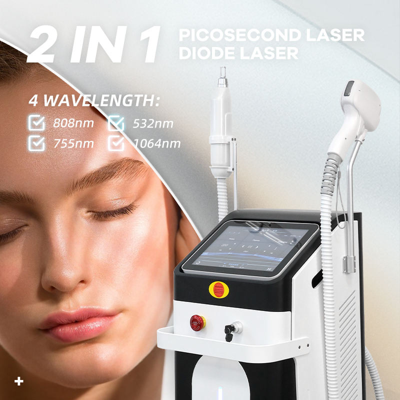 Appareil de beauté professionnel 2-en-1, laser picoseconde à diode semi-conductrice 808nm/532nm pour l'épilation et le traitement des pigments cutanés (ABS)