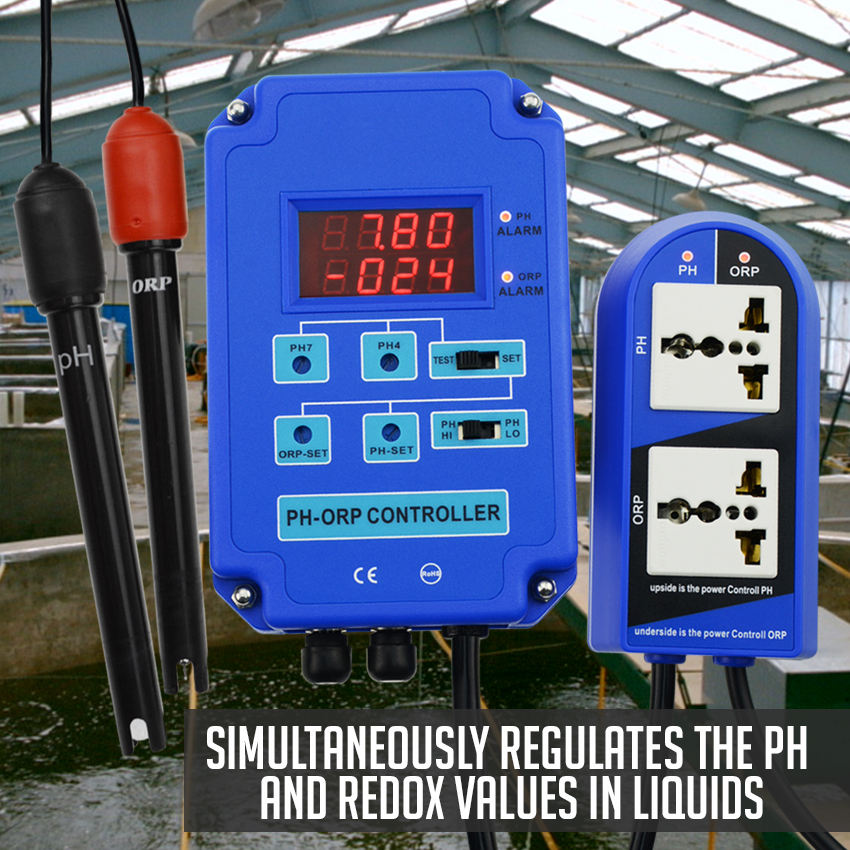 Contrôleur de pH et ORP professionnel 2 en 1 avec 2 électrodes BNC, double sortie relais pour l'aquaculture, les piscines et l'industrie