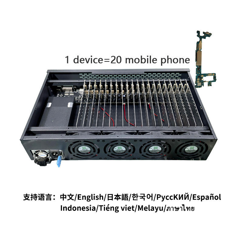 Boîtier vide professionnel 20 canaux pour Phone Farm, compatible avec les cartes mères Samsung/Android