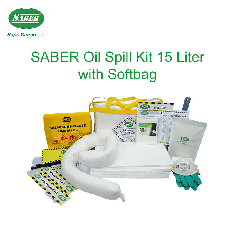 Kit professionnel anti-déversement d'hydrocarbures de 20 litres, kit absorbant d'hydrocarbures de haute résistance pour situations d'urgence, avec gants résistants aux produits chimiques pour usage industriel