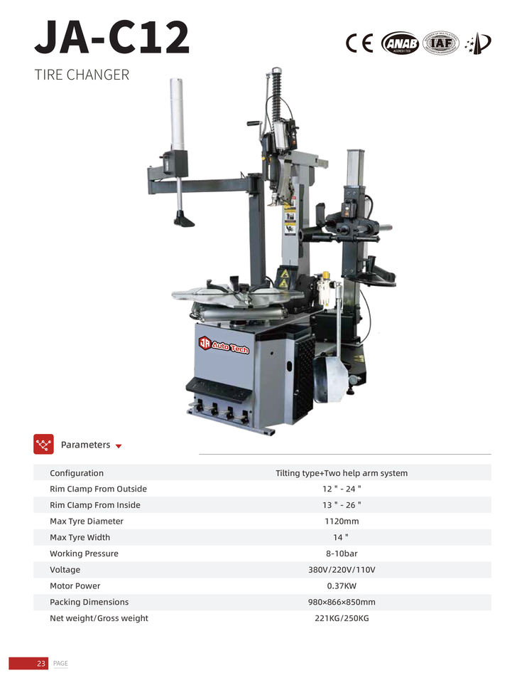 JA-C12 Tire Changer & JA-B06 Wheel BalancerNuméro de Type