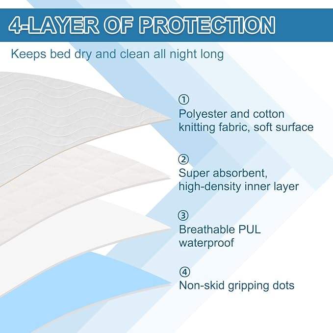 Protège-matelas absorbant super absorbant à 4 couches, lavable et réutilisable, avec 8 poignées pour les personnes âgées