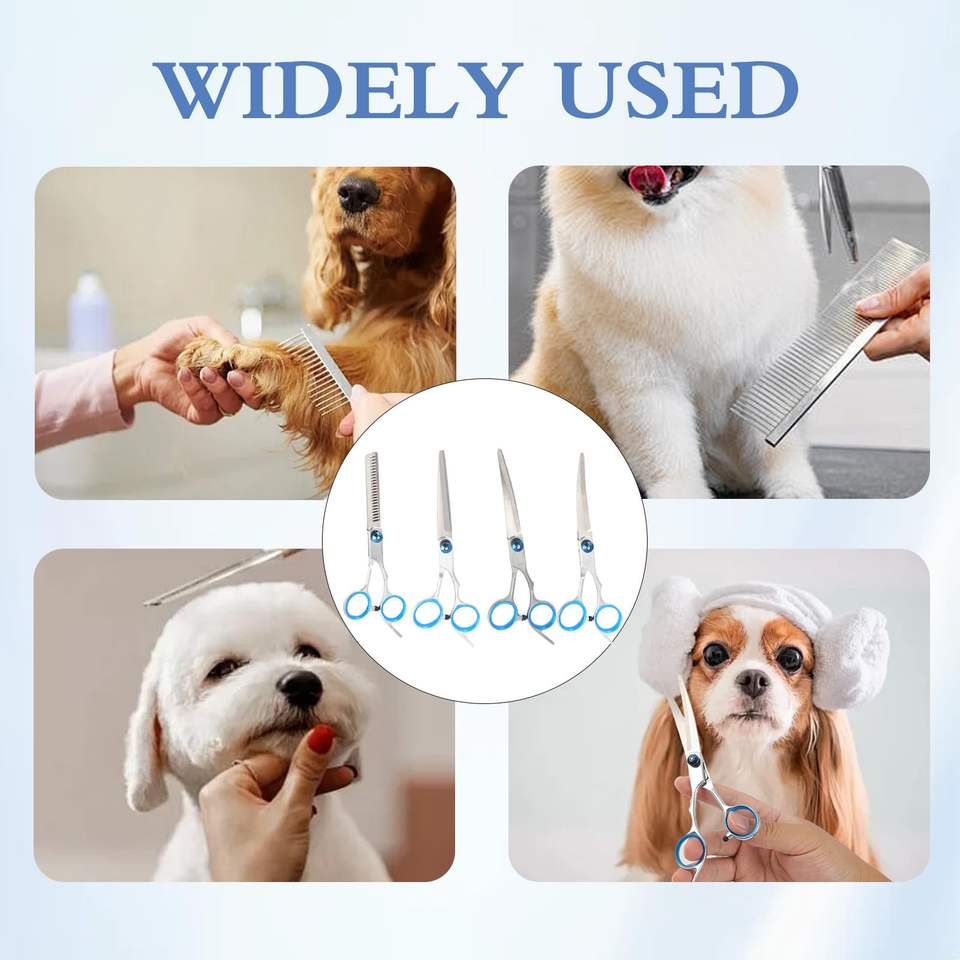 Kit de ciseaux de toilettage pour chien professionnel 4 en 1, ciseaux de sécurité et peigne en titane, acier inoxydable résistant à la rouille