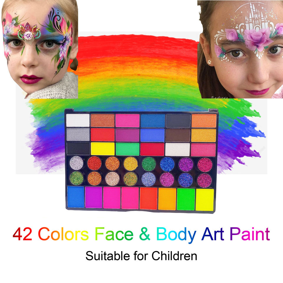 Description:Peinture de visage, Peinture corps, Maquillage d'Halloween, Tatouages temporaires, Kit de peinture de visage, Peinture UV de corps, Fourniture de fiesta, Peinture qui brille dans le noir, Peinture festival, Maquillage théâtre, Peinture cosplay
