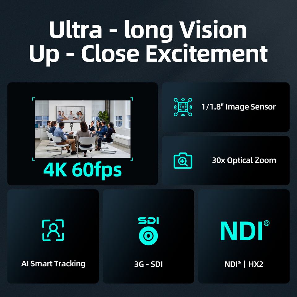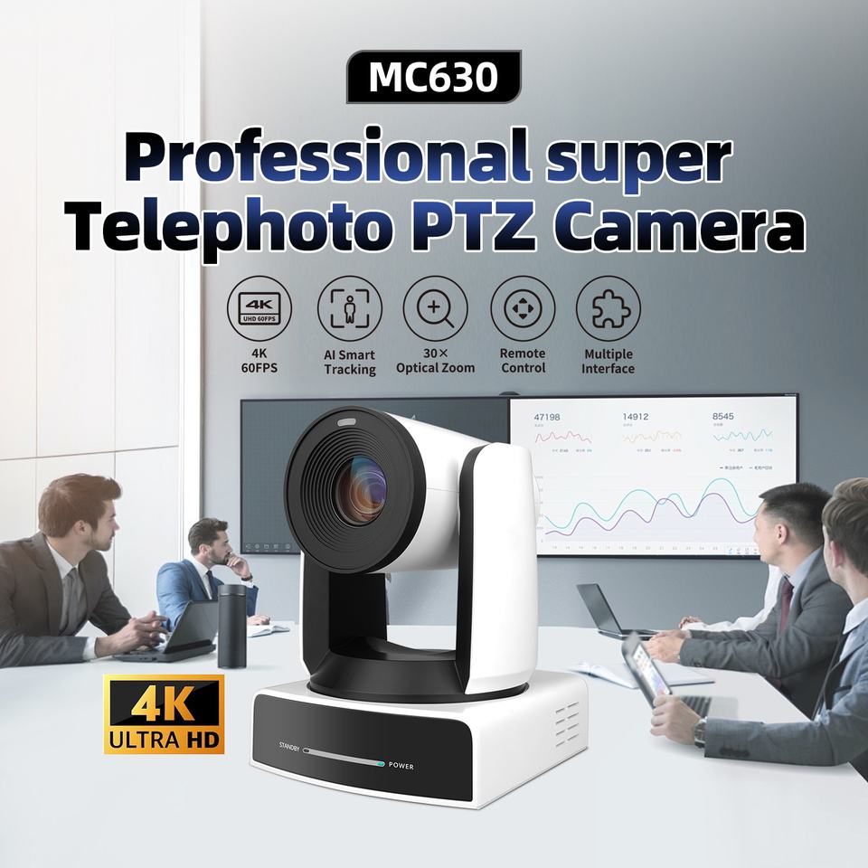 Caméra PTZ Super Téléobjectif Professionnelle 4K 60fps avec Zoom Optique 30X MC630 - Vidéoconférence UHD Longue Portée et Streaming en Direct
