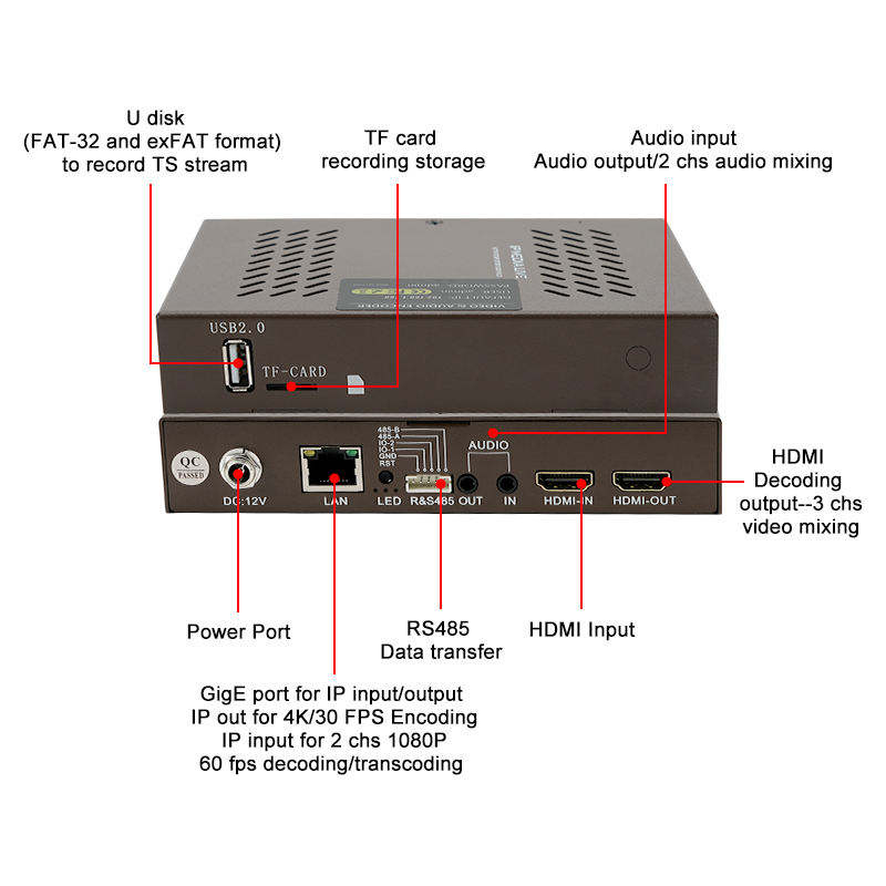 Encodeur professionnel 4K HD vers IP, transcodeur UDP vers HLS, décodeur IP vers HD, mélangeur vidéo tout-en-un H.265/H.264, garantie 5 ans