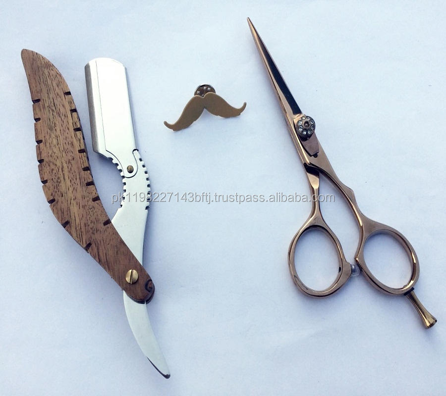 Ciseaux professionnels de coupe de cheveux de barbier en acier inoxydable de 5.5 pouces et ensemble de rasoir outil de beauté de haute qualité avec pointe de lame tranchante