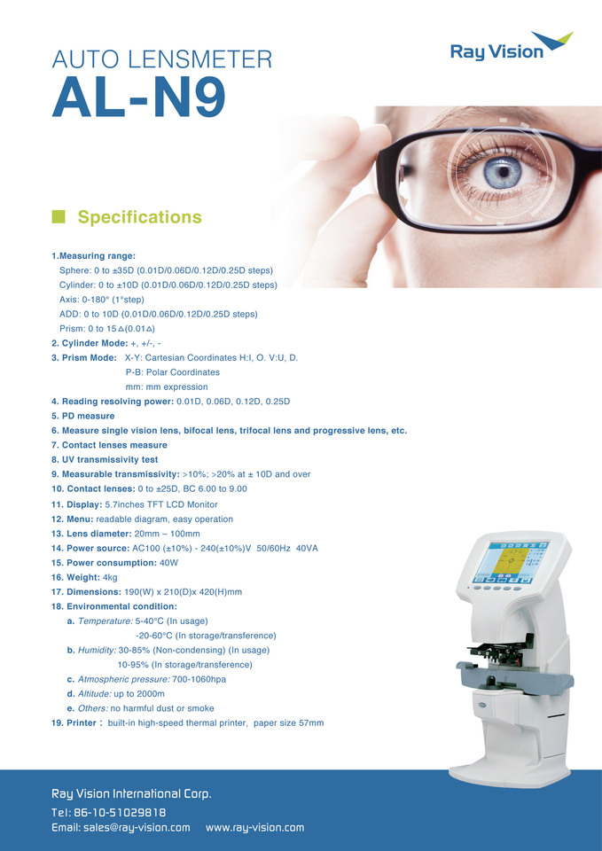 Lentimètre automatique numérique professionnel AL-N9 avec écran TFT LCD de 5,7 pouces pour magasin d'optique et clinique ophtalmique